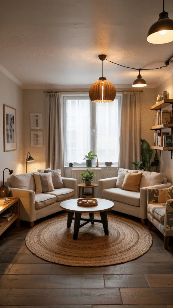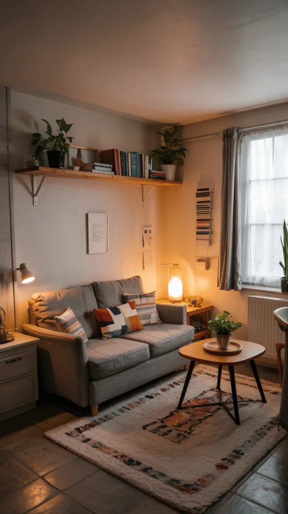 I wanted my living room to feel like a warm hug, so I created a cozy corner nook. I tucked a plush loveseat into one corner, angled against a small side table with a lamp. A soft rug underfoot and a few throw pillows made it my go-to spot for reading. Adding a floating shelf above for books and plants saved floor space while adding personality.
