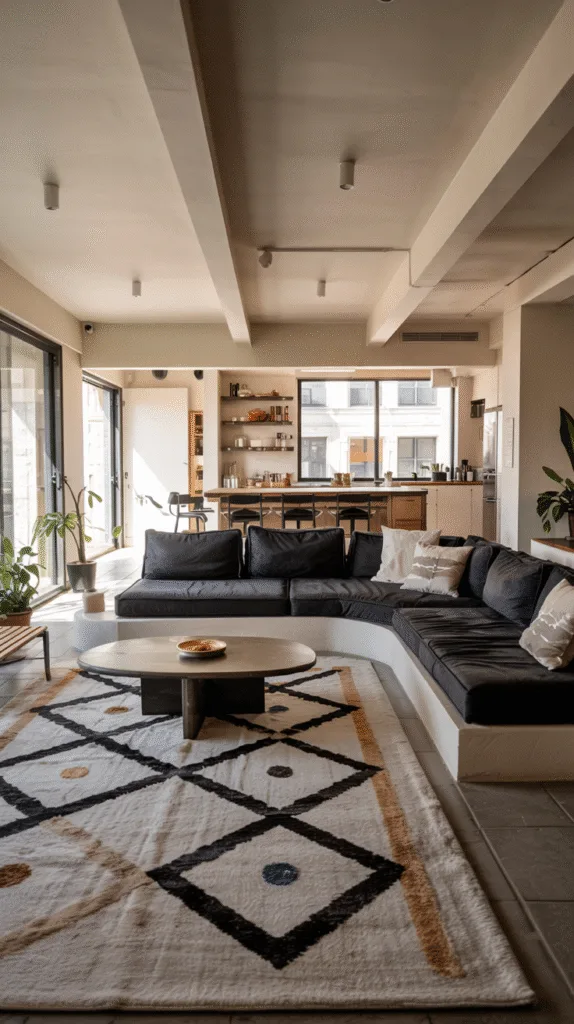 In my open-plan apartment, I struggled to define the living area. I used a long, low-profile sectional sofa to create a natural boundary between the living room and kitchen. A large area rug anchored the space, and I placed a coffee table in the center to keep the flow open yet distinct.