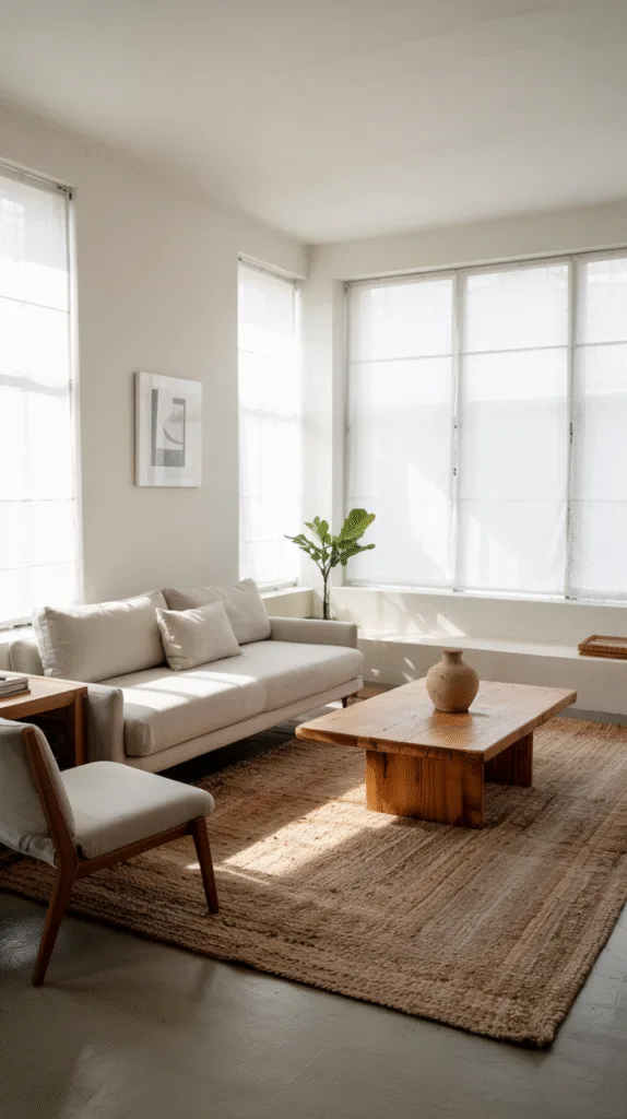 I embraced minimalism when I realized less is more in a small space. I chose a sleek, low sofa and a single accent chair, keeping furniture to a minimum. A neutral color palette with pops of texture (like a woven rug) made the room feel airy and serene.