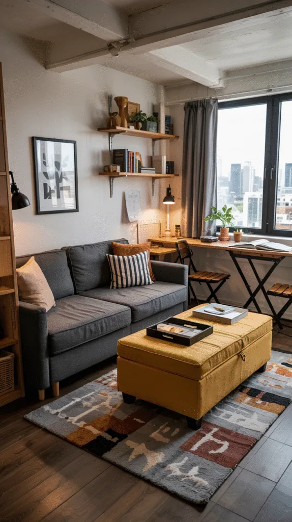 My studio apartment demanded versatility, so I invested in a sofa bed that doubled as a guest bed. I paired it with a storage ottoman that served as a coffee table and extra seating. A foldable desk against the wall became my workspace by day.