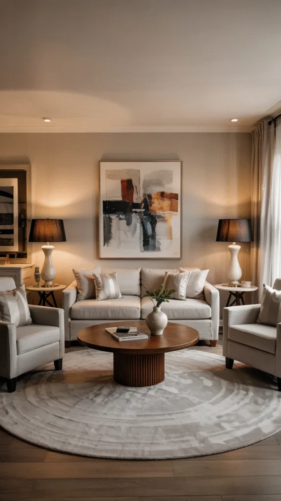 For balance, I opted for symmetry. I placed two identical armchairs across from a sofa, with a coffee table in between. Matching lamps on side tables flanked the setup, creating a calm, harmonious vibe perfect for my minimalist aesthetic.