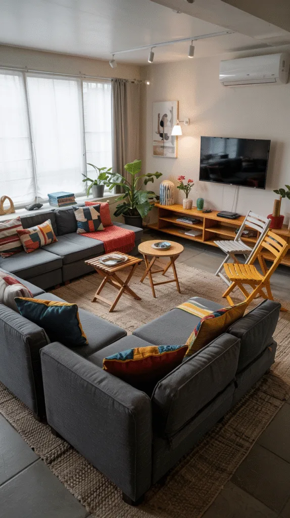 I invested in modular furniture for flexibility. A sectional with movable pieces let me rearrange the layout for movie nights or parties. A stackable side table and foldable chairs made the space adaptable to my needs.