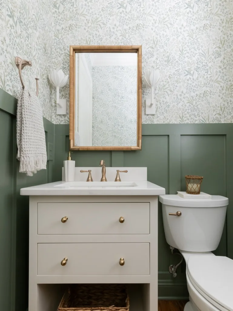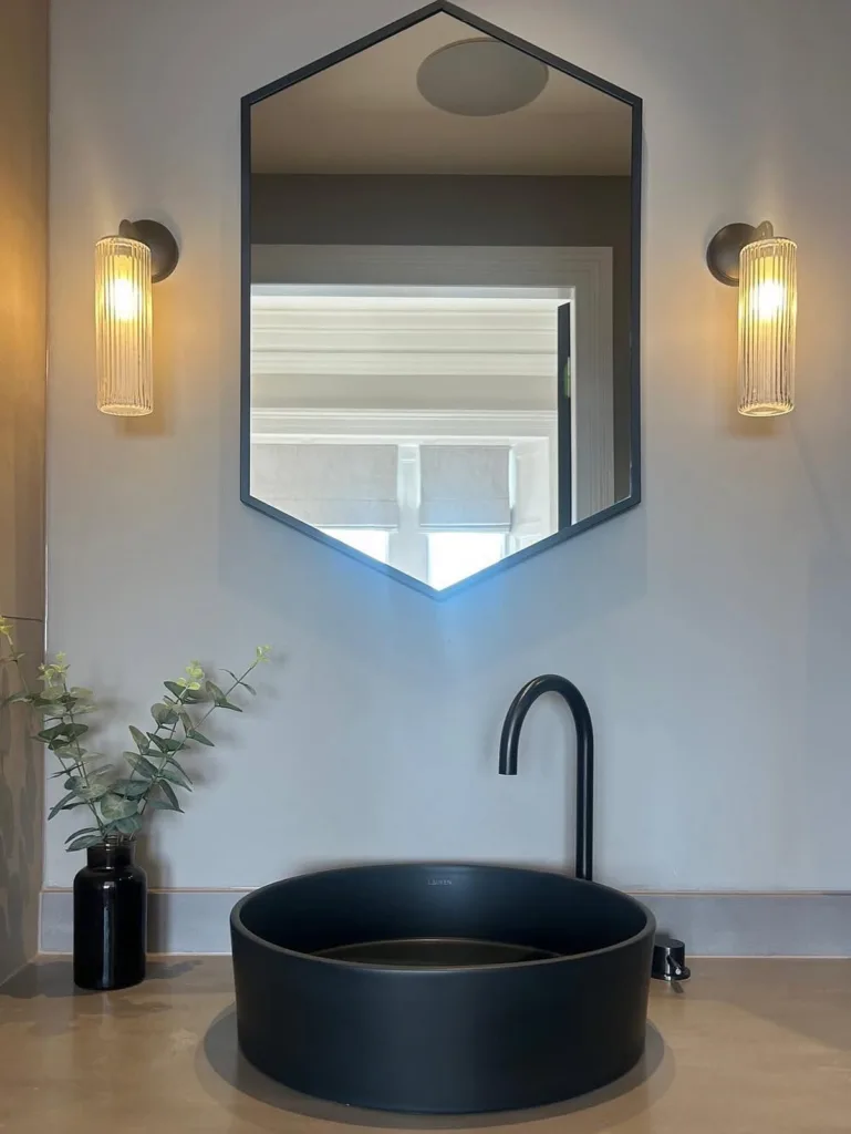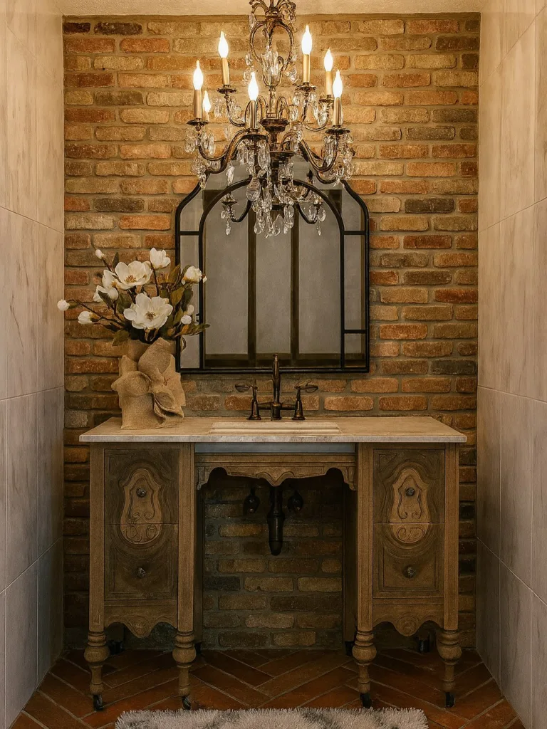 - Corner Mirror Trio – Three angled mirrors meeting in a corner—triples a tiny powder room.