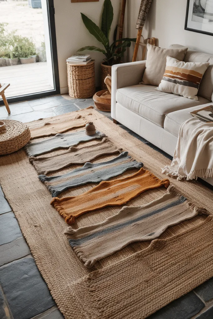 1. Layered Jute and Sisal Rug Cascade: A Textural Foundation from the Fields