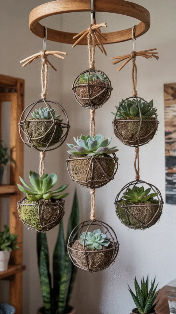 11. Succulent Sphere Mobile: Hanging Orbs of Desert Resilience