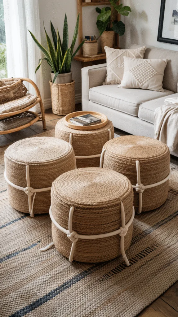 13. Jute Pouf Cluster: Floorbound Thrones of Fiber Fortitude