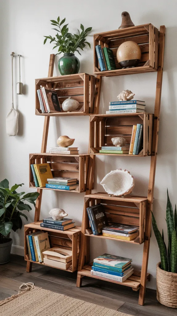 15. Upcycled Crate Bookshelves: Timber Tomes of Reclaimed Roots