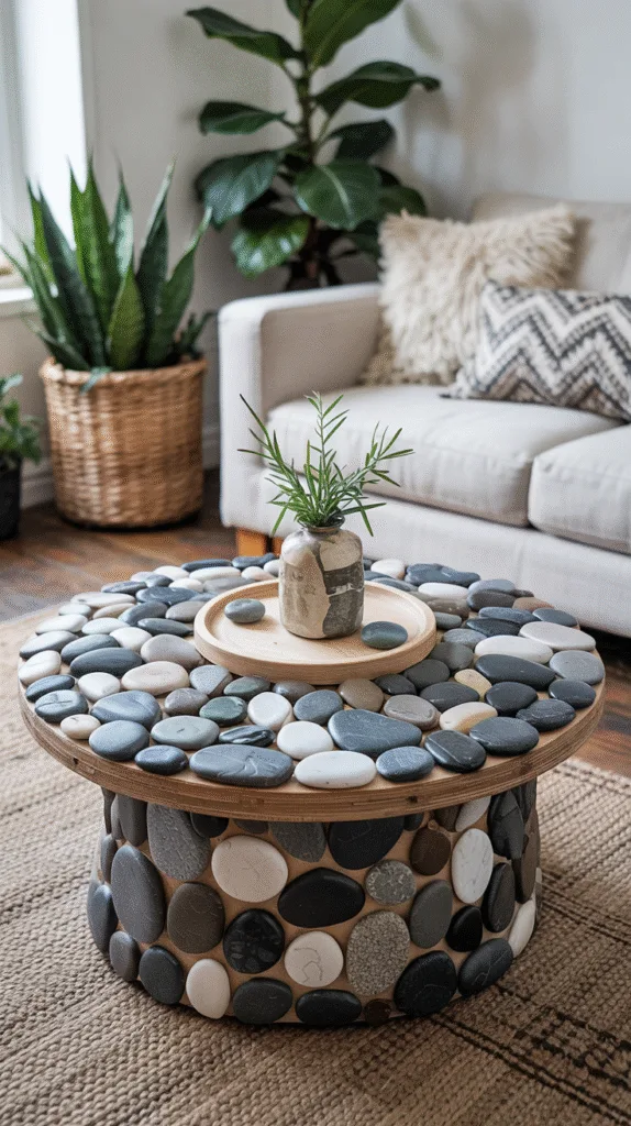 17. Stone Mosaic Coffee Table: Pebbled Portals of Patience