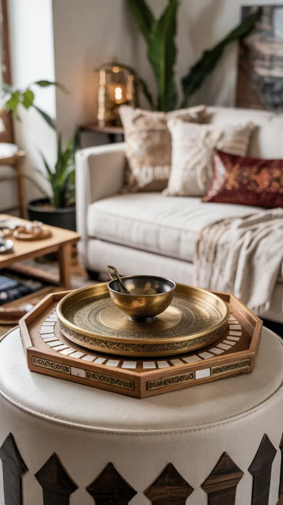 Nestle serving trays inlaid with bone and brass, this Boho Living Room Makeover Ideas forging octagonal oak bases etched with tribal geometries—epoxied with camel bone shards and hammered wire. Stack on ottomans for tiered temptation, their metallic glints catching eyes amid neutrals. This variant elevates snacks to artifacts, the hybrid materials blending cultures in compact form, ideal for tea rituals. Hand-riveted edges ensure heirloom heft, whispering of Silk Road smiths, where every tray bears the bite of creation.