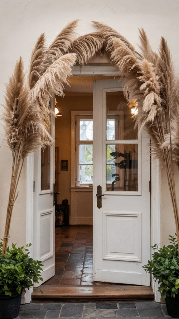 Frame doorways with a pampas plume arch, this final earthy twist wiring tall, feathery stalks into an organic ogee over thresholds. Trim and fan dyed-in-mud tones—securing with zip ties hidden in fluff—for a swaying sentinel that ushers in whimsy. Its plumes brush shoulders like greetings, shedding seasonally for renewal. This makeover portals spaces, the height amplifying ceilings while the fade-proof feathers endure. Evocative of Argentine plains, it marks transitions with grace, ending our ideas on a high note of untamed elegance.