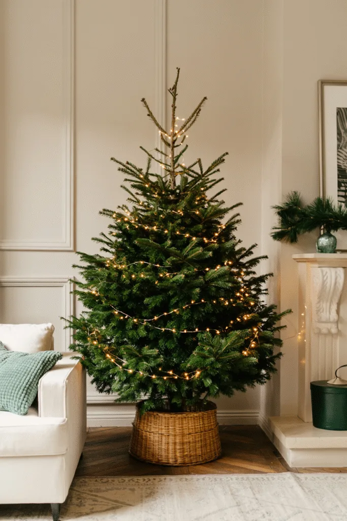 For a whimsical display, drape delicate fairy lights over your Christmas tree to create a canopy effect. These tiny, twinkling lights add a magical, ethereal glow, especially when paired with sheer ribbon or tulle. Start at the top and let the lights cascade down in loose, flowing strands, mimicking falling snow. This style works well with minimalist or bohemian decor, emphasizing softness and charm. Add small glass ornaments to catch and reflect the light for extra sparkle.