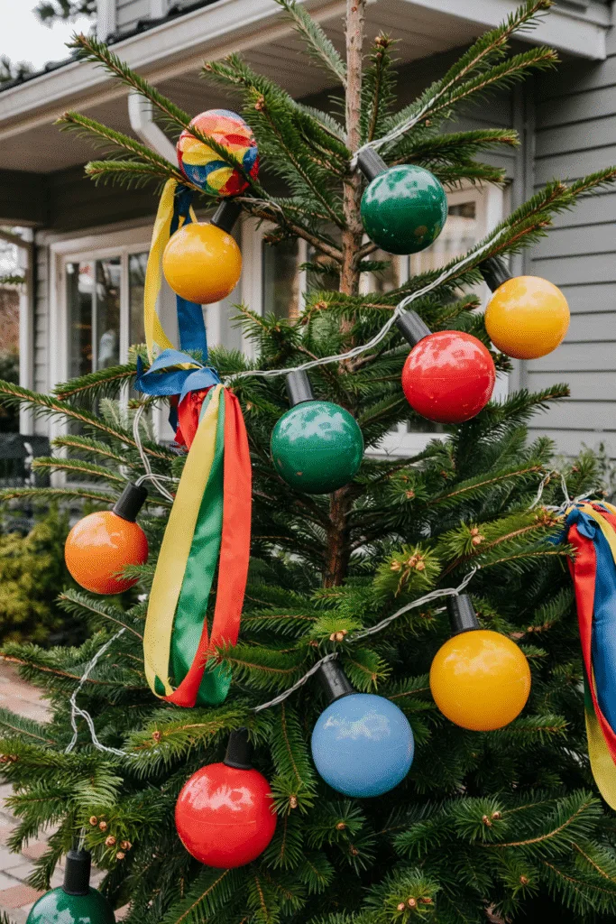 Craft your own light ball ornaments using chicken wire, zip ties, and mini LED string lights. Form the wire into spheres, wrap with lights, and hang from your outdoor tree’s branches for a whimsical, glowing effect. These handmade decorations add a personal touch and are perfect for budget-conscious decorators. Vary the sizes for visual interest and use warm white lights for a cozy feel or multicolor for a playful vibe.