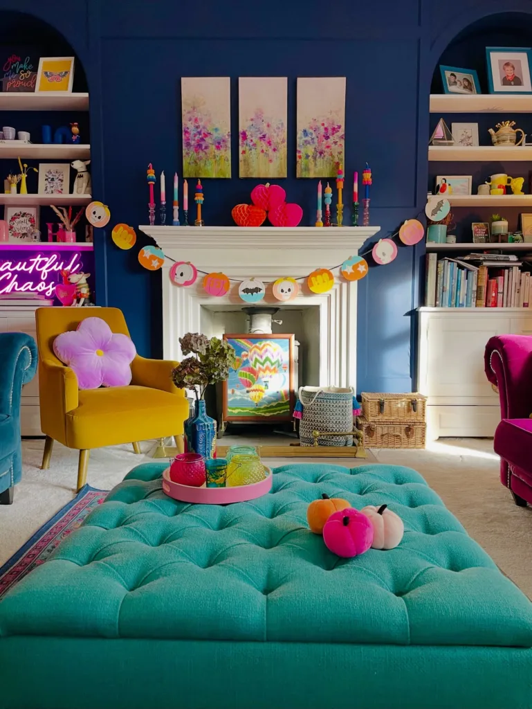 Budget breakdown: Under $100 total for basics (pumpkins: $20, throws: $40, candles: $20, DIY garlands: $20). For colorful decor on a budget, prioritize multi-use items like versatile trays.