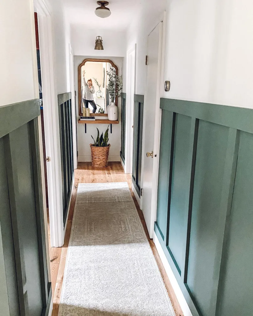 - Under $500: Paint, mirror, rug, hooks, and thrifted console