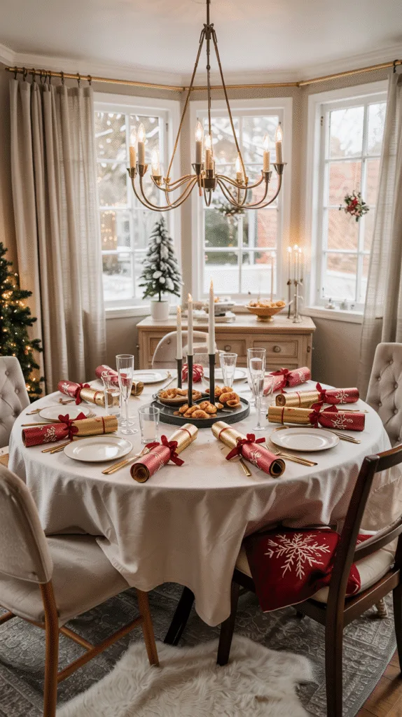 I make homemade Christmas crackers for each place setting, filling them with small trinkets and handwritten notes for my family. I wrap them in festive paper with gold and red patterns, tying the ends with velvet ribbon. When we pull them apart during dinner, the laughter and surprises add a playful, heartfelt touch to our meal, making it a memory we’ll cherish.