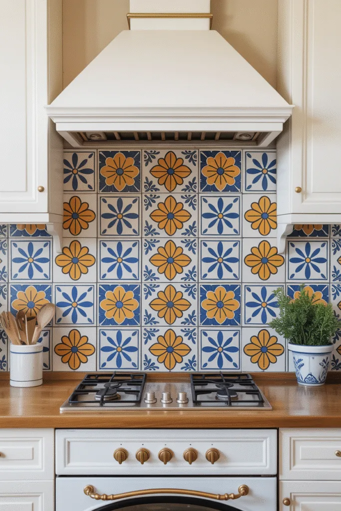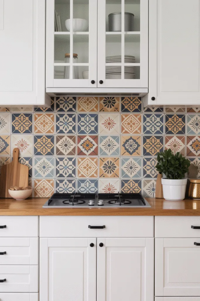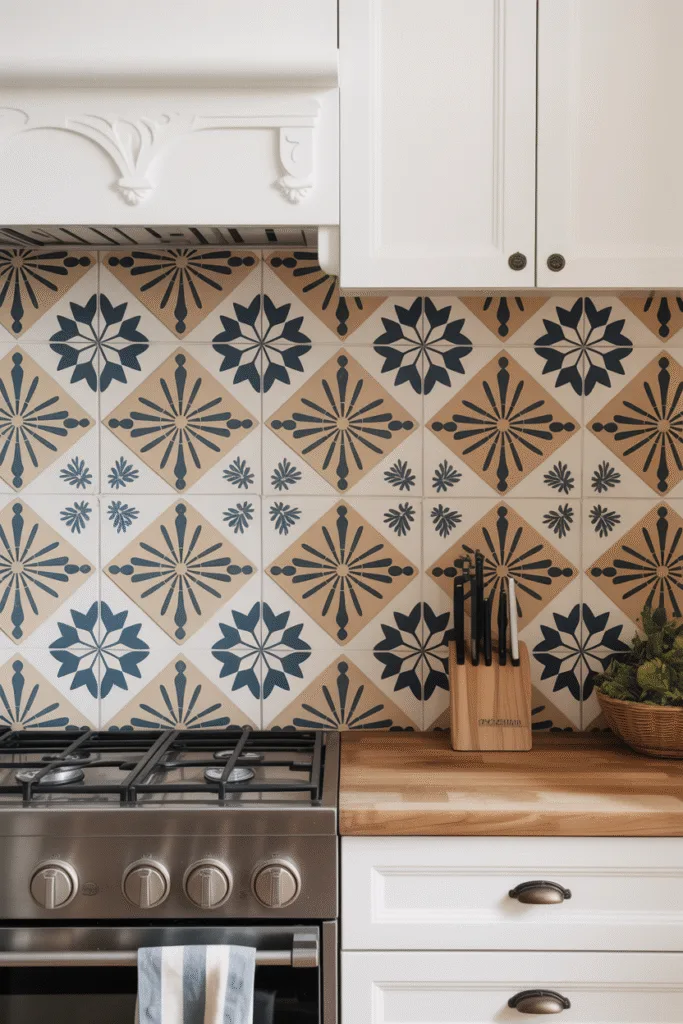 Encaustic tiles, with their bold geometric or floral patterns, are a standout choice for eclectic or vintage-inspired kitchens. These cement-based tiles feature intricate designs baked into the surface, ensuring the patterns won’t fade over time. Available in a range of colors and motifs, they can be used sparingly as an accent or across the entire backsplash for maximum impact. Their matte finish and durability make them practical for high-traffic kitchens, while their artistic flair adds a touch of old-world charm.