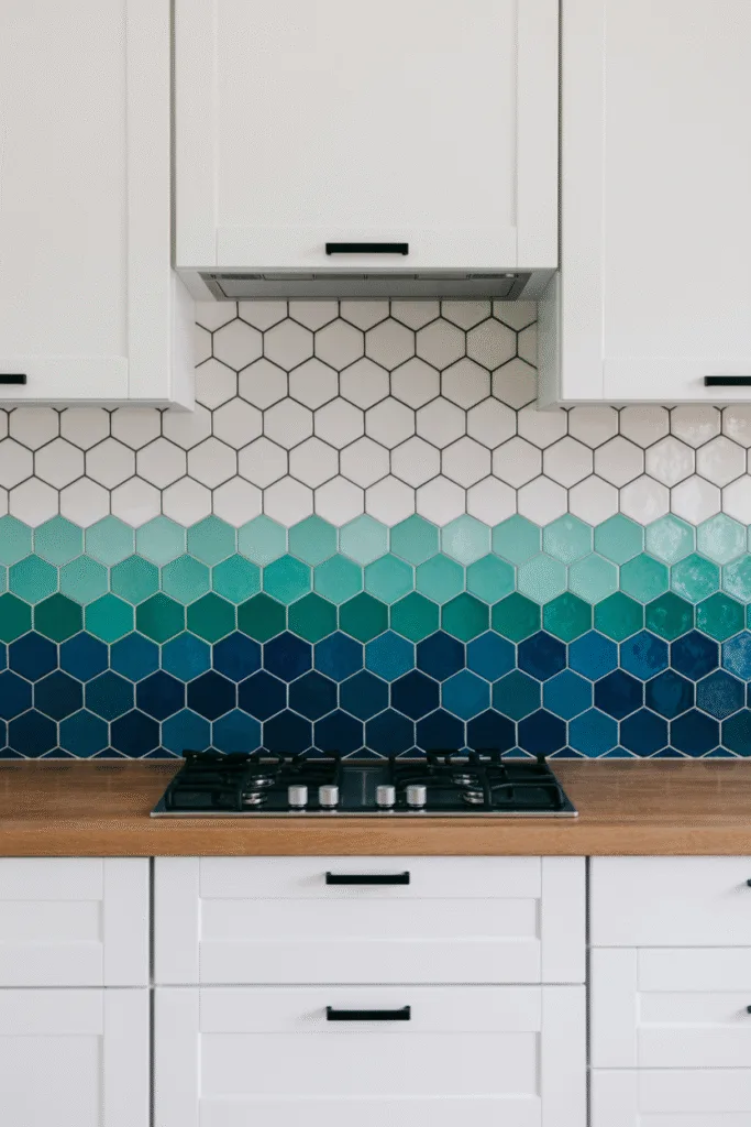 Hexagon tiles bring a modern geometric flair to kitchen backsplashes. Available in ceramic, porcelain, or even natural stone, these six-sided tiles can be arranged in endless patterns, from honeycomb grids to ombre color transitions. White hexagons offer a clean, modern look, while bold colors like navy or emerald green create a dramatic focal point. Their unique shape adds visual interest without overwhelming the space, making them versatile for both small and large kitchens. Pair with minimalist cabinetry to let the tiles shine.