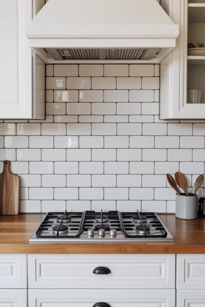 Subway tiles are a timeless choice, offering clean lines and versatility. White subway tiles, in particular, create a bright, airy feel, making small kitchens appear larger. Their simple rectangular shape allows for various patterns, such as herringbone or staggered brick, adding subtle texture without overwhelming the space. Pair with dark grout for a modern twist or white grout for a seamless, classic look. These tiles are easy to clean, budget-friendly, and complement any countertop material, from marble to butcher block. Ideal for traditional or minimalist kitchens, this backsplash idea is a safe yet stylish choice that never goes out of fashion.