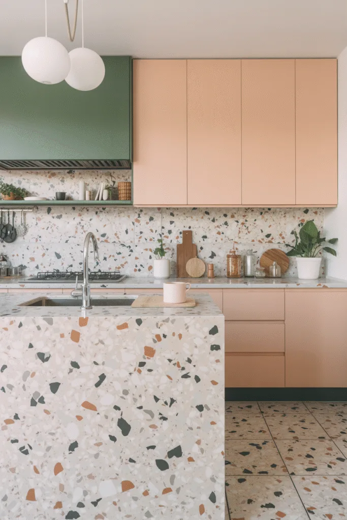 Terrazzo, with its speckled, colorful design, is making a comeback in modern kitchens. Composed of marble, quartz, or glass chips embedded in cement or resin, terrazzo tiles offer a playful yet sophisticated look. Available in large slabs or smaller tiles, they add texture and visual interest without overwhelming the space. Their durability and easy maintenance make them ideal for busy kitchens. Choose neutral tones for a minimalist look or vibrant colors for a bold, eclectic vibe.