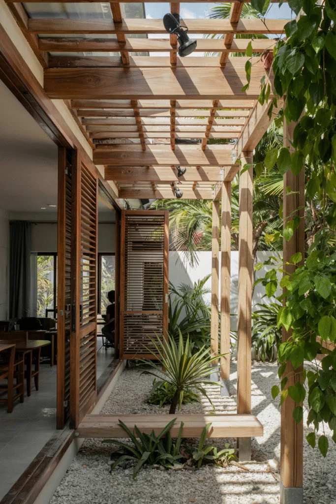 - Functional Benefits: Slats provide shade, privacy, and ventilation while maintaining an open, airy feel.
