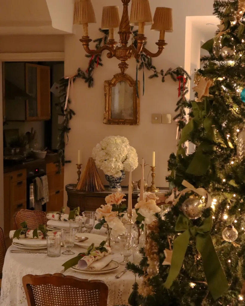 One roll of metallic wrapping paper as a runner + real candles + fresh greenery from the yard = instant luxury.
