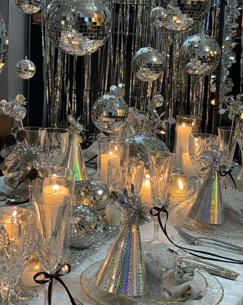 December 31 is the only night when the table literally counts down with you. It’s the backdrop for photos that will live on phones forever, the surface that holds the glasses you’ll raise at 12:00, and the first thing guests see when they walk in full of hope for the year ahead. A memorable tablescape doesn’t just feed people—it creates the mood: elegant, playful, nostalgic, or full-on glamorous. And unlike Christmas, which can feel sentimental, New Year’s Eve is pure celebration—no rules, no traditions to honor, just pure joy.