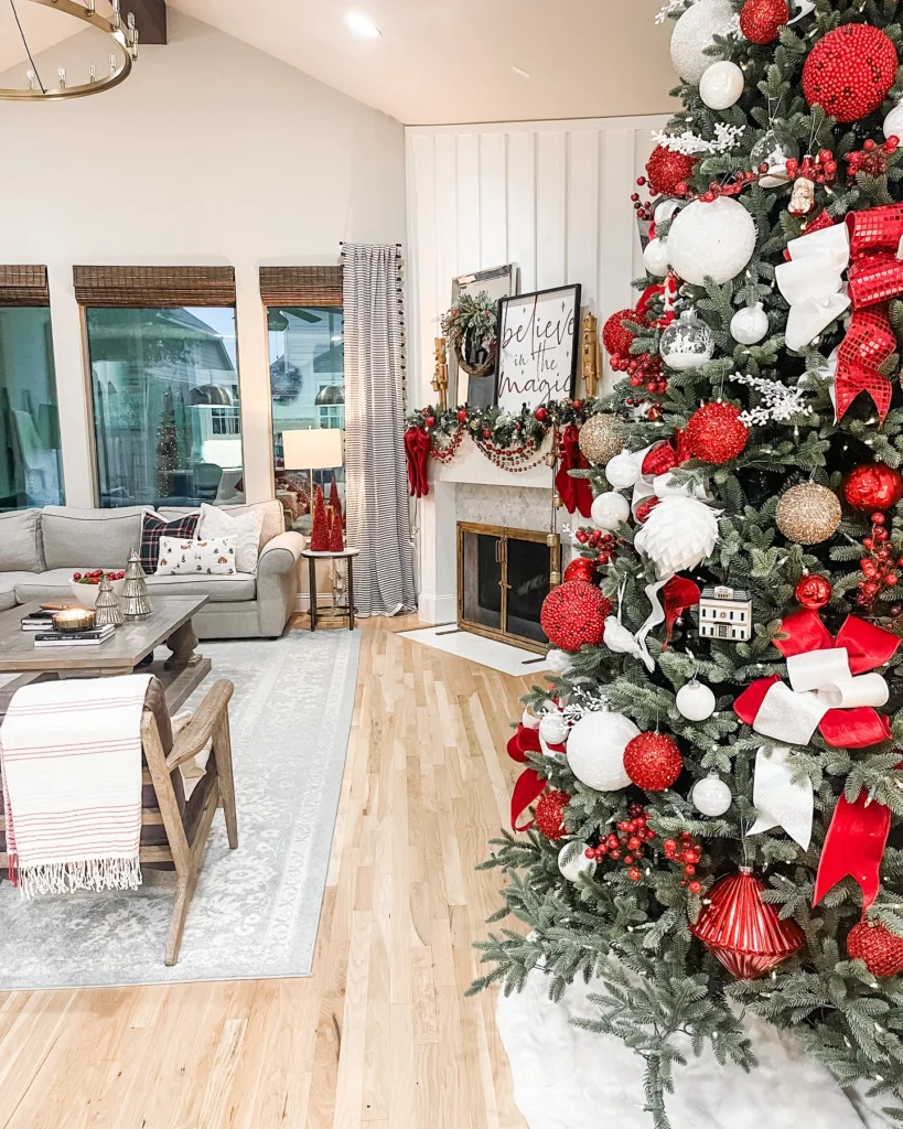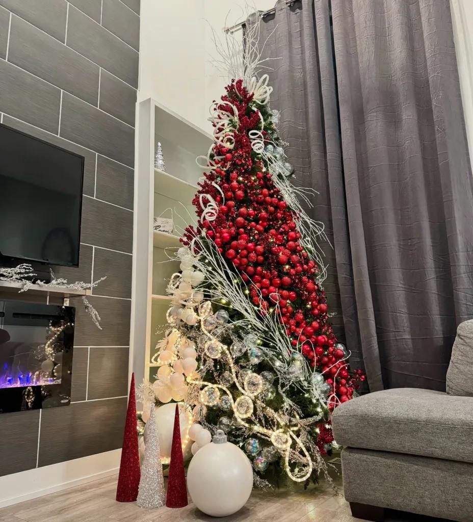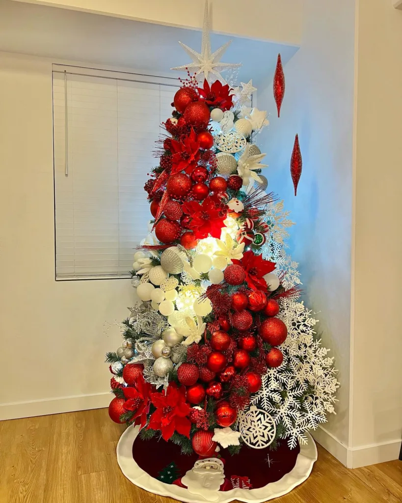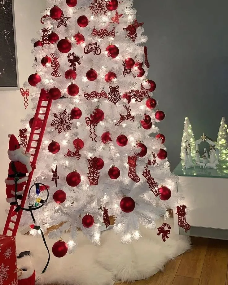 The red and white color palette is a holiday favorite for several reasons. Red symbolizes love, warmth, and festivity, often associated with Santa Claus, holly berries, and cozy fireside gatherings. White, on the other hand, represents snow, purity, and simplicity, adding a crisp and clean contrast to the boldness of red. Together, they create a balanced and visually appealing aesthetic that suits a variety of decor styles, from rustic to contemporary. In 2025, this theme is particularly popular due to its versatility and ability to evoke nostalgia while allowing for modern twists. Whether you’re decorating a small tabletop tree or a grand floor-to-ceiling centerpiece, these ideas will help you craft a cohesive and eye-catching look.