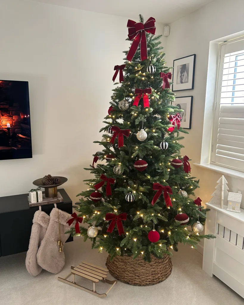- Layer Decorations: Start with lights, then garlands, followed by ornaments, and finish with a tree topper.