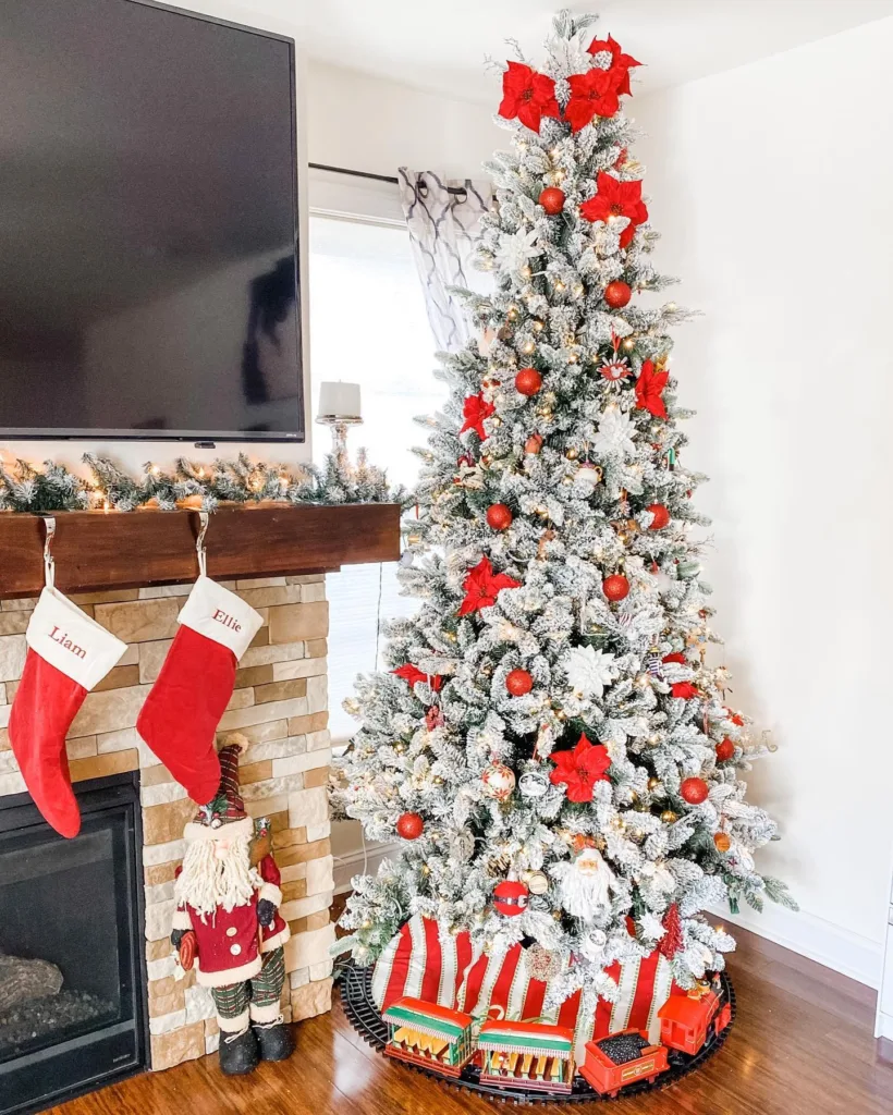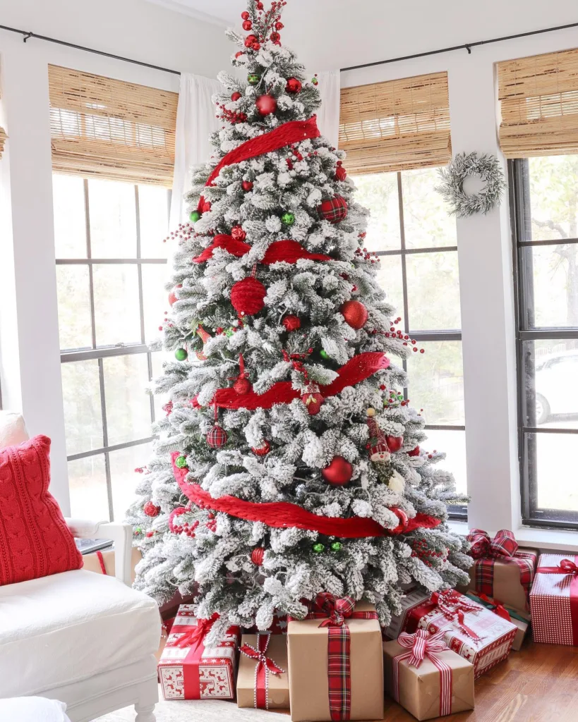 The red and white theme is popular because it combines festive warmth (red) with wintry purity (white), creating a balanced and visually appealing look. It’s versatile enough to suit traditional, modern, or rustic decor styles.