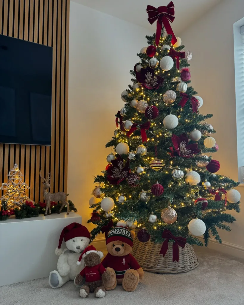 A red velvet bow, white star, or Santa hat topper complements the theme. Choose a topper that matches your overall style, whether it’s elegant, playful, or rustic.