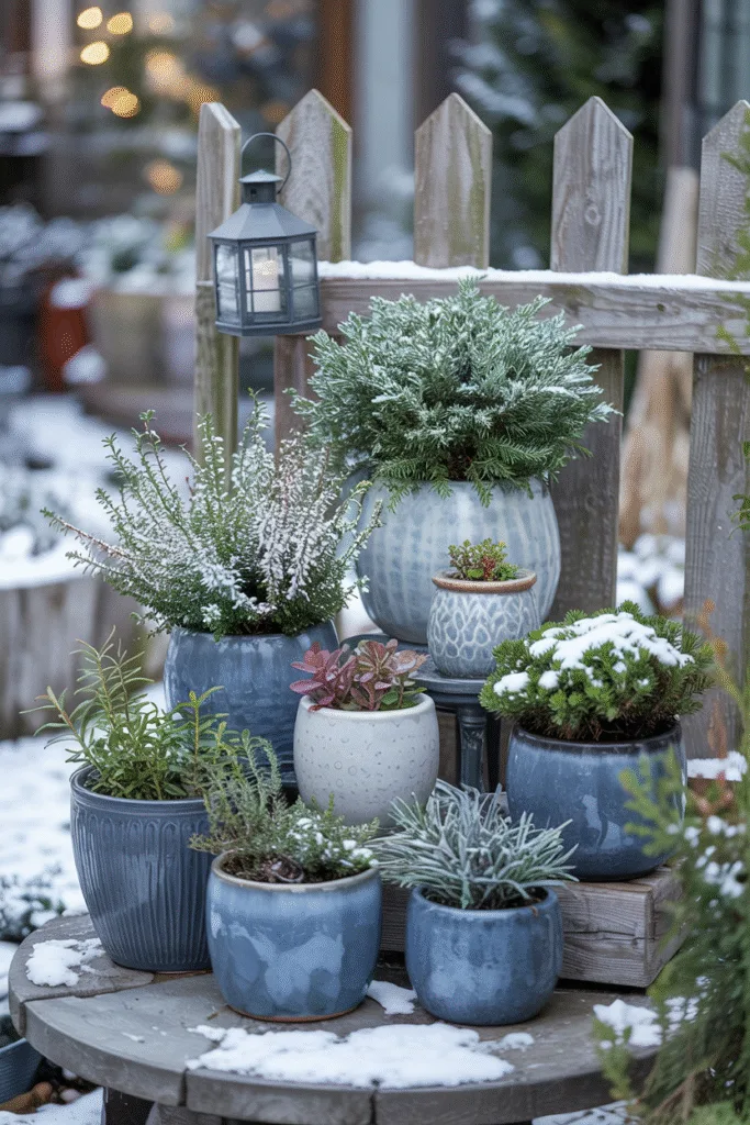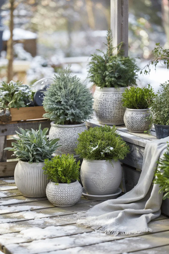 Invest in frost-resistant ceramic or terracotta pots to create striking displays. Fill them with evergreens, ornamental grasses, or winter heathers for texture and color. Group pots of varying heights to create visual interest without overcrowding your space. Seal the pots with a weatherproof glaze to ensure durability.