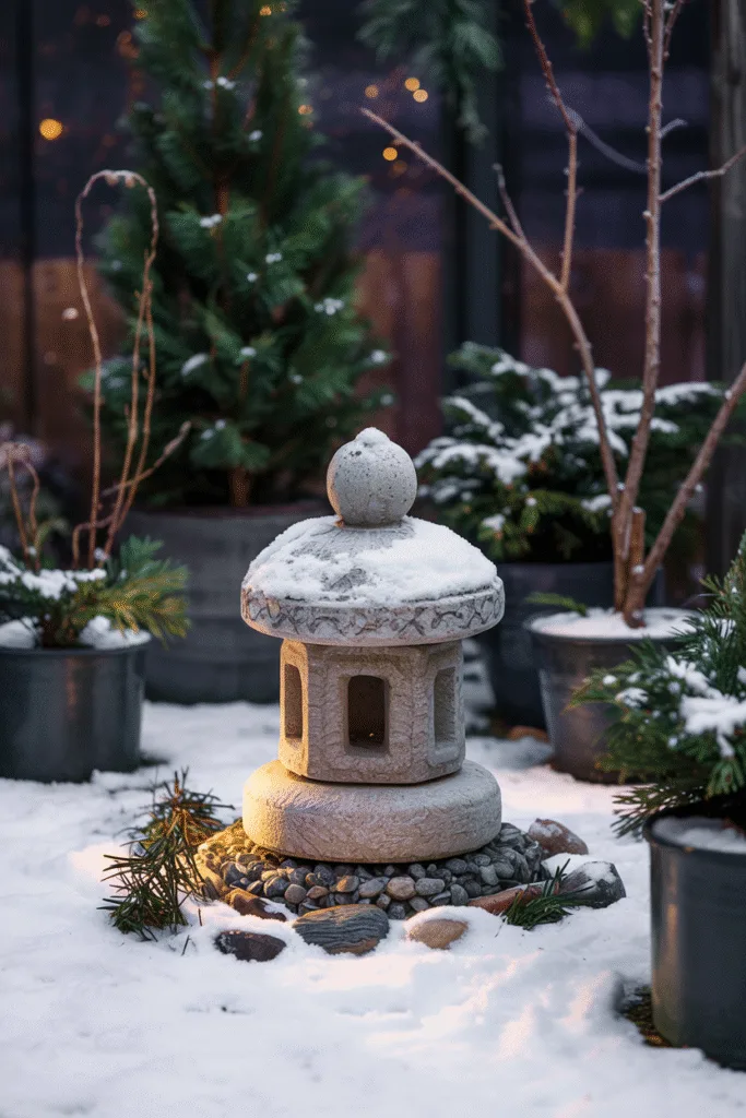Incorporate small, weather-resistant sculptures or garden art to add personality to your winter space. Think stone lanterns, metal silhouettes, or driftwood pieces that look striking against snow or frost. Place them strategically to draw the eye without cluttering your garden.