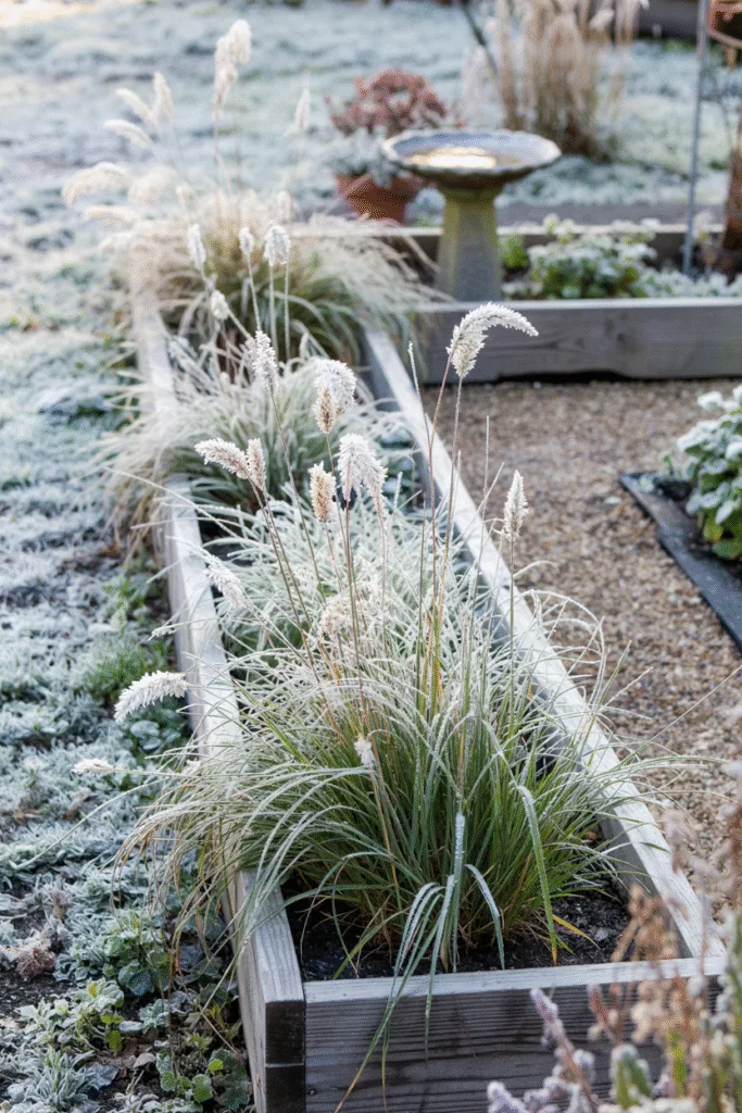 Low-maintenance ornamental grasses like blue fescue or miscanthus add texture and movement to winter gardens. Their feathery plumes look stunning dusted with frost. Plant them in narrow beds or pots to suit small spaces, and trim them back in late winter to encourage new growth.