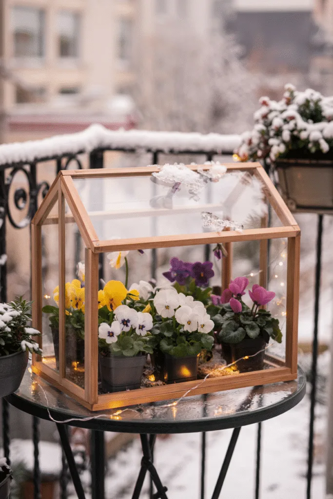 A small tabletop or portable greenhouse can extend your growing season in a compact garden. Use it to nurture delicate plants like pansies or cyclamen, which bloom in winter. Place it on a balcony table or in a sheltered corner to protect plants from frost while adding a charming focal point.