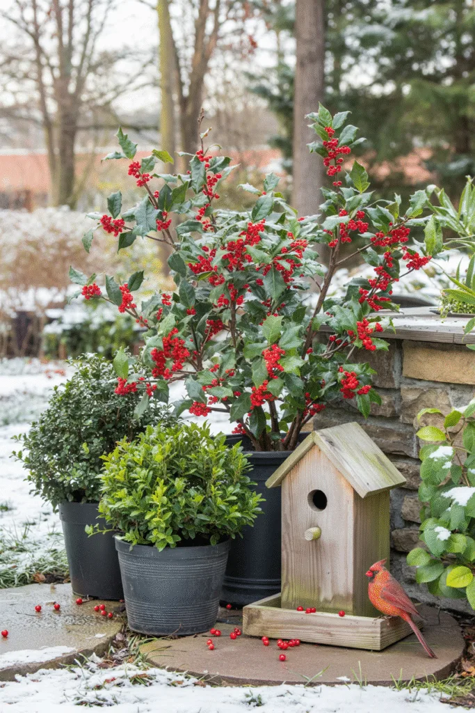 Plants like holly or winterberry produce vibrant red or orange berries that stand out against snow or frost. Grow them in pots or along borders to add bursts of color. Their compact growth habits make them ideal for small gardens, and the berries attract birds, adding life to your winter space.