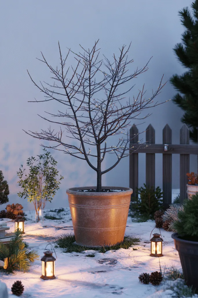 Embrace the stark beauty of bare-branched trees like dogwood or birch in your small garden. Their intricate silhouettes add architectural interest during winter. Plant them in large pots or directly in the ground if space allows. Highlight their structure with uplighting or by hanging small lanterns from the branches for a dramatic effect.