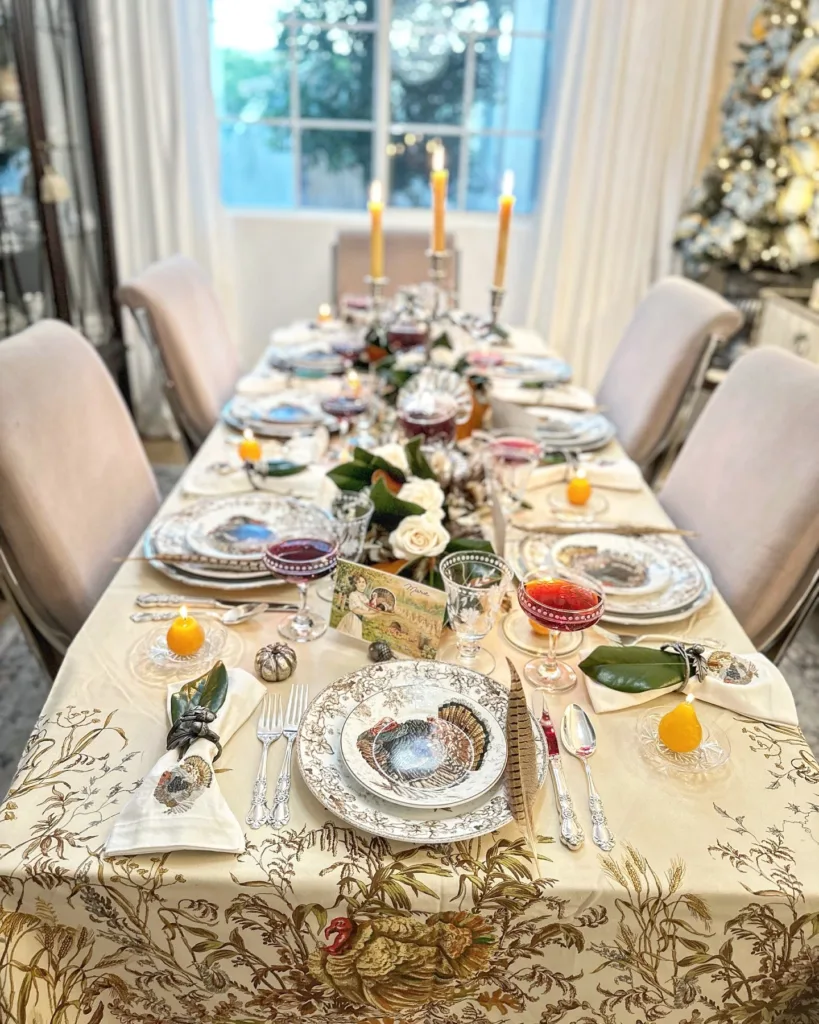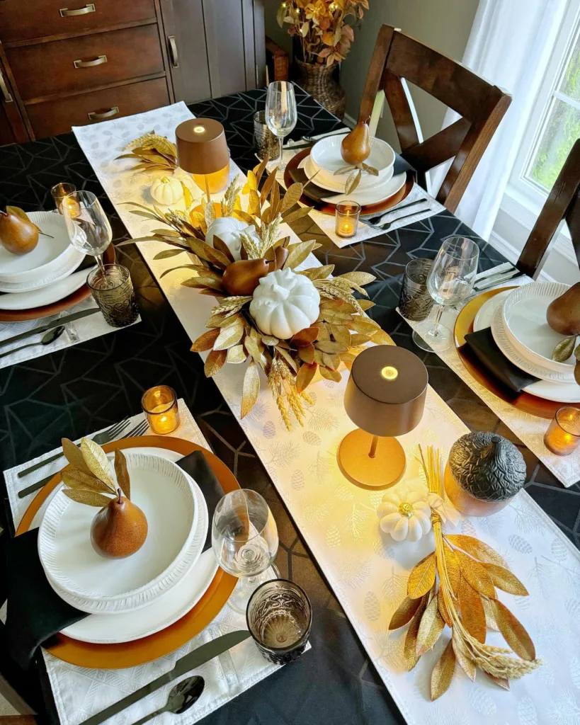 Nothing warms a Thanksgiving table like thoughtful lighting. Mix candles—tapered for height, pillars for base layers—with string lights woven through garlands. For 2025 innovation, cordless rechargeable lamps offer ambient illumination without cords cluttering the scene.