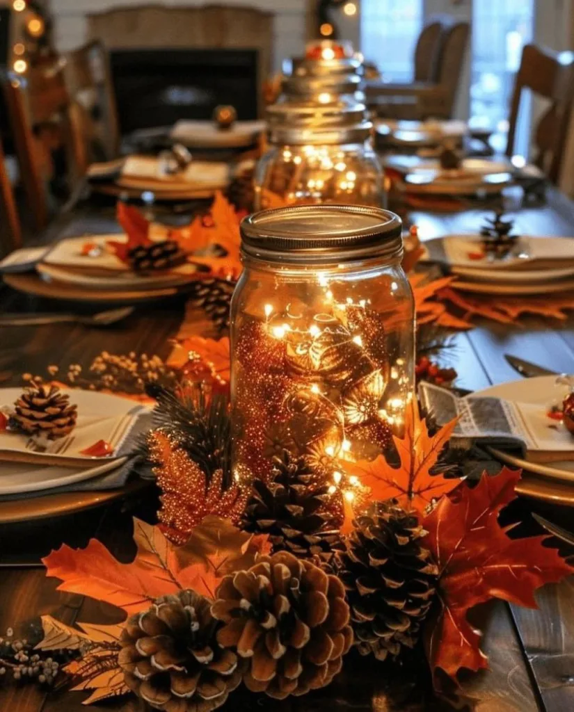 Sustainability is at the forefront, with decor featuring upcycled jars as vases, biodegradable confetti from dried leaves, and locally sourced pumpkins. Foraged items like pinecones, acorns, and eucalyptus add an organic touch, reducing waste while connecting your table to the earth’s bounty.