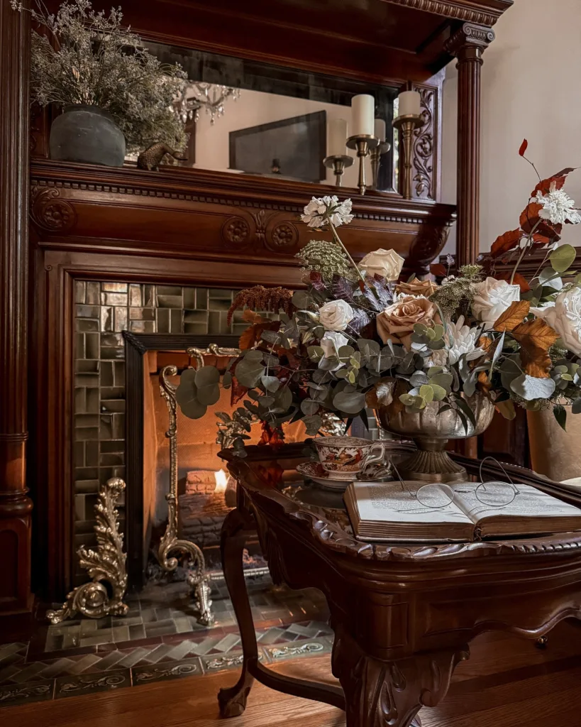 For autumnal coziness, warm brown tones and nostalgic touches shine, thanks to @historically_zane.