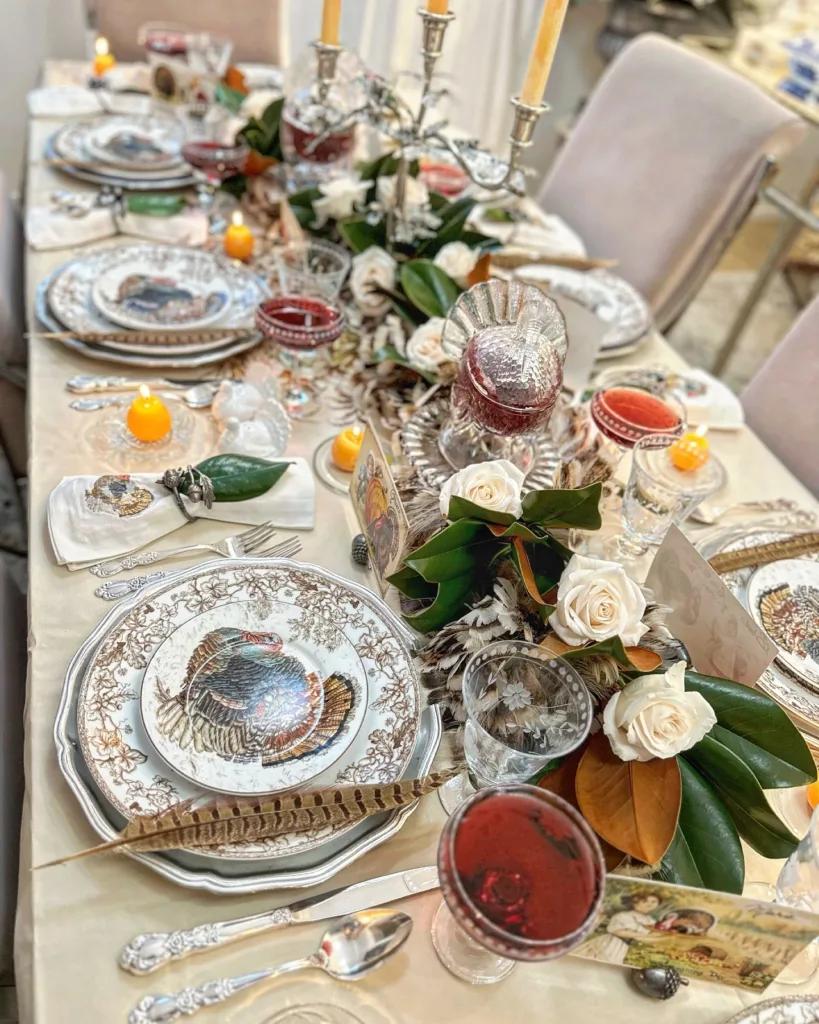 Past tablescapes in varied styles, from Lori’s collection, showcase evolution.