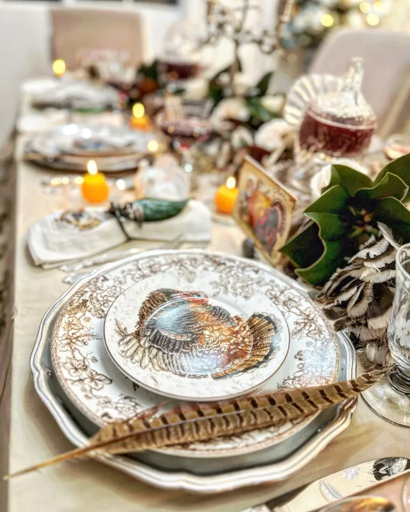 Engage the senses with subtle scents. Simmer potpourri of cloves and citrus on a sideboard, or tuck dried lavender into napkin folds. Avoid overpowering—let the turkey shine.
