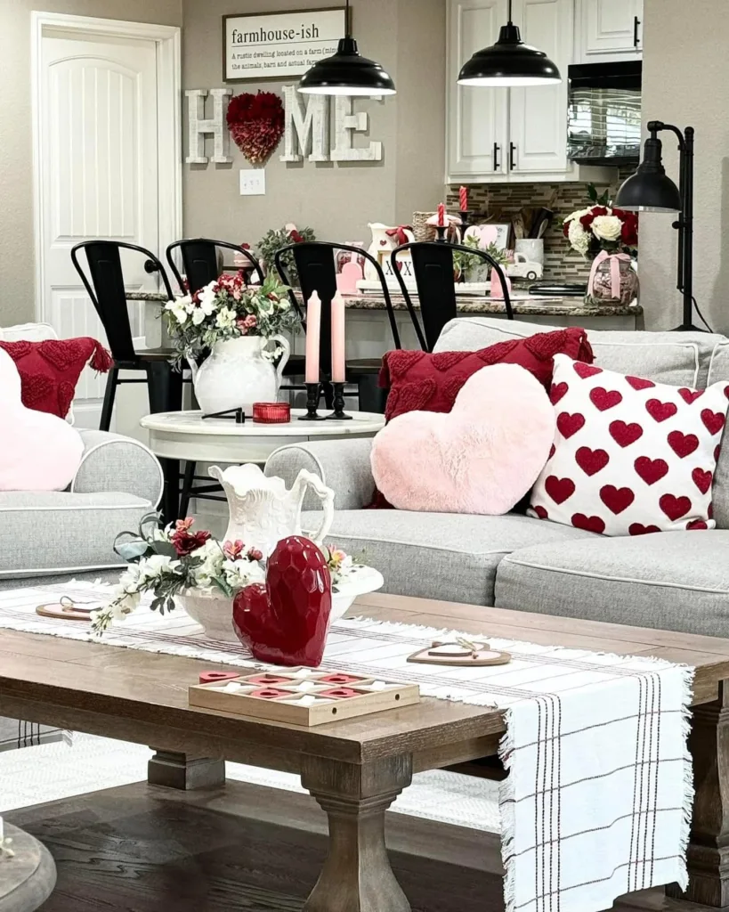 A successful Valentine’s decor scheme starts with a thoughtful color palette. Classic combinations include deep crimson with soft blush for a romantic contrast, or monochromatic pinks layered for subtlety. Add metallic accents like silver or rose gold to elevate the look without overwhelming. Key elements to incorporate: candles for ambient lighting, which cast a warm glow; textiles such as throws and rugs for coziness; and florals, real or faux, to bring life. Balance is crucial—pair bold patterns like stripes or polka dots with solids to avoid chaos. Natural light enhances pastels, so position decor near windows. For scent, integrate essential oils or potpourri in rose or vanilla to engage the senses fully. These choices ensure your home feels cohesive, romantic, and tailored to your style.