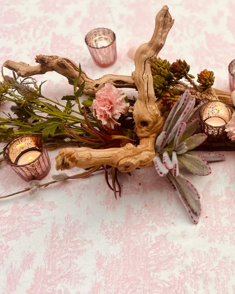 - Sustainability (recycled glass, dried flowers, thrifted elements)