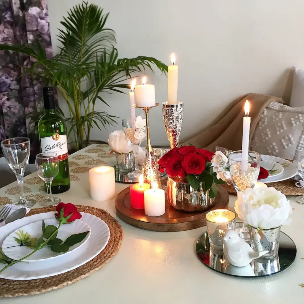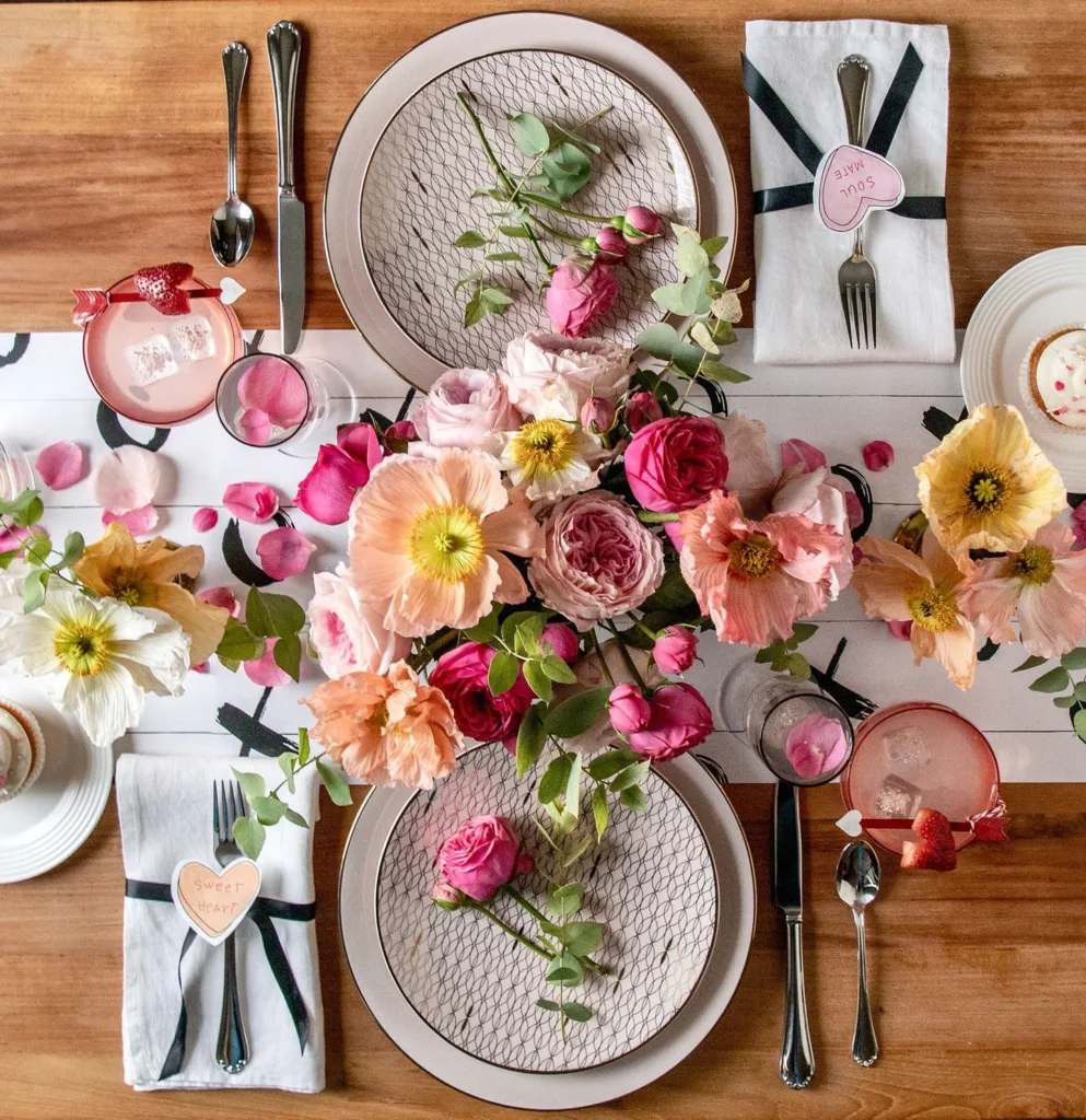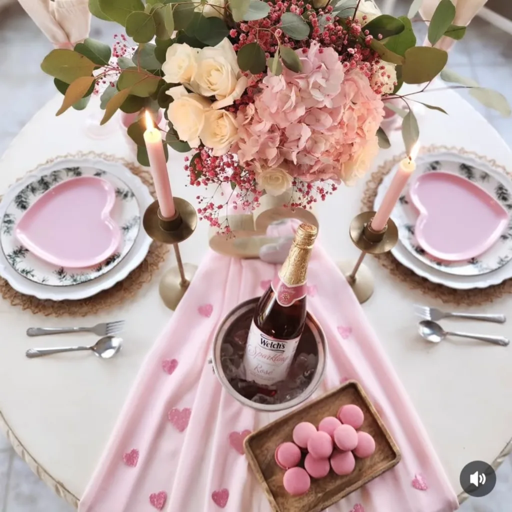 The dining table is where love is most directly expressed on February 14—through shared food, eye contact, toasts, and conversation. The centerpiece is the focal point that ties everything together: it dictates the color story, sets the emotional tone (romantic, playful, luxurious, intimate), and creates the atmosphere for memories. In 2026, centerpieces emphasize: