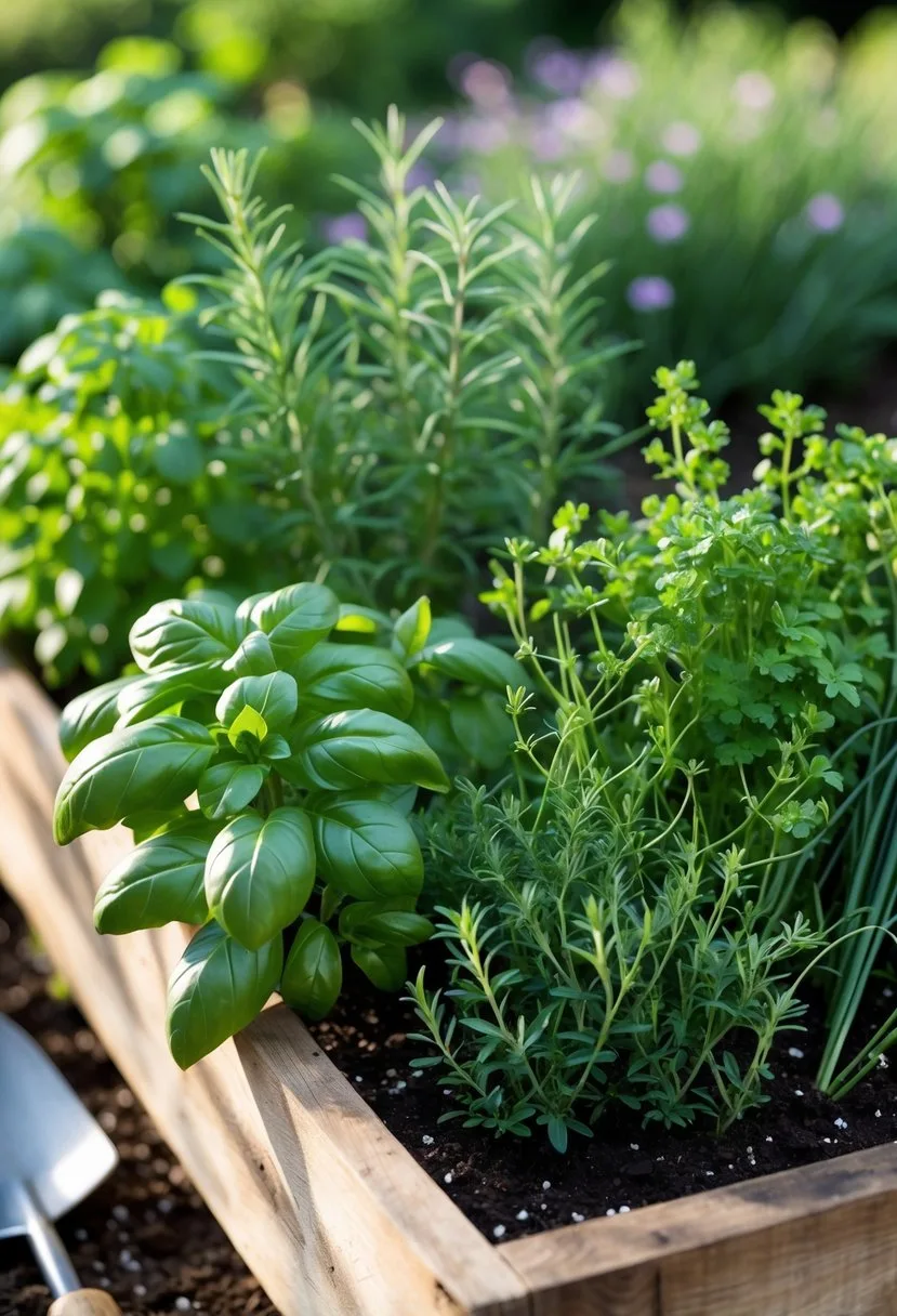 Basil and tomato-friendly herbs are a classic combo. Basil loves full sun and regular water, so plant it with parsley or chives near tomatoes to boost flavor and shade the roots.