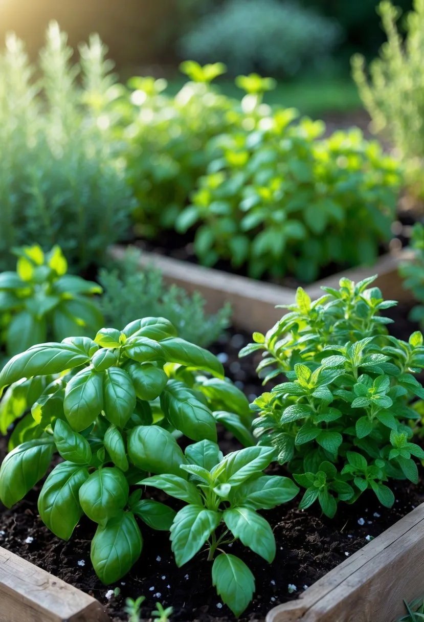 Basil, cilantro, and parsley want richer, loamy soil with steady organic matter and moderate fertility. Give them a balanced fertilizer every 4–6 weeks during high growth.