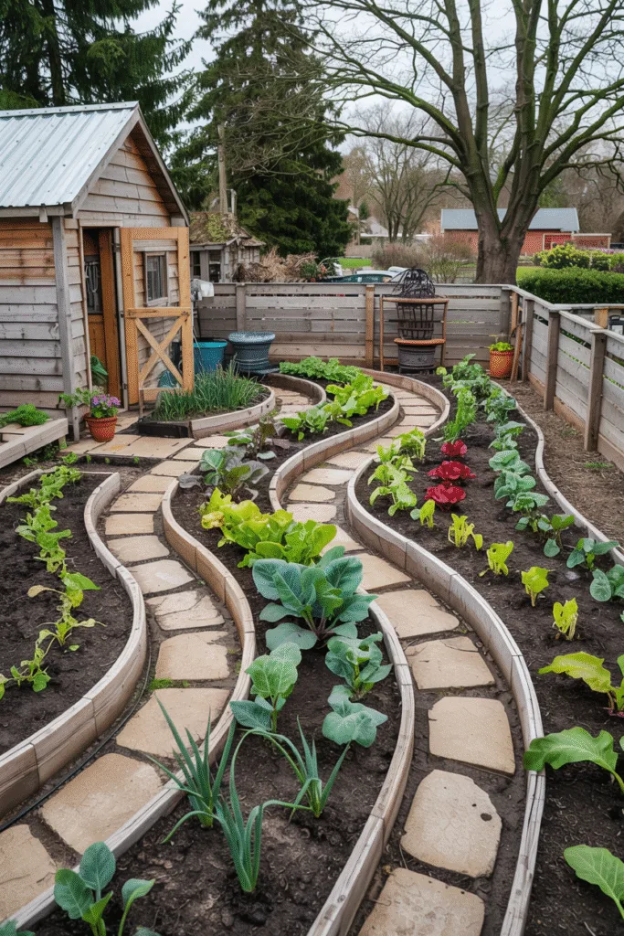 I love wandering through my garden, so I designed a winding path pattern with curved beds snaking around a central walkway. I planted hardy root veggies like carrots and beets along the edges. The curves soften the harshness of winter, and the path makes it easy to check on plants without trudging through mud.