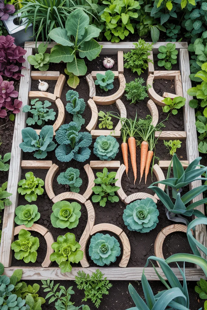 I love experimenting with companion planting, so I designed a puzzle-like pattern where each “piece” pairs complementary plants. For example, I planted garlic near kale to deter pests, and carrots beside leeks for mutual growth benefits. The interlocking shapes make the garden feel like a living jigsaw, and the plants thrive together.