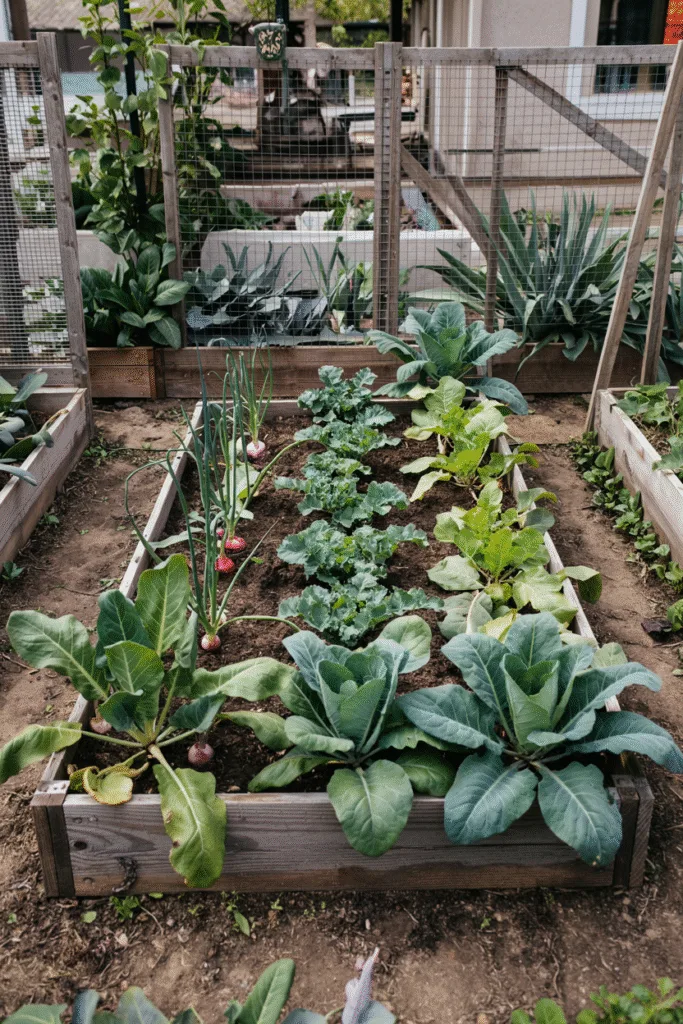 To add structure, I created a garden with a “hedge” of winter greens like collards and kale around the perimeter, with root veggies like radishes inside. The outer greens act as a windbreak, protecting the inner crops. It’s functional and gives my garden a polished, framed look.