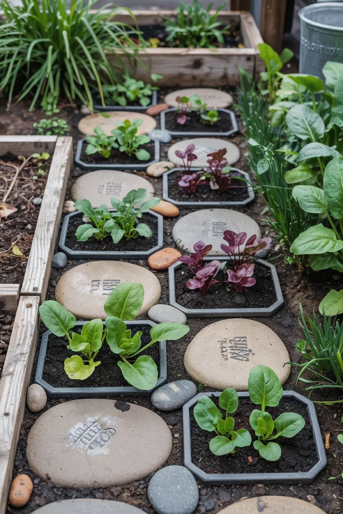 I laid flat stones in a grid pattern, leaving soil patches between them for planting. Each patch held a small cluster of veggies like spinach or beets. The stones keep my boots clean during wet winters and add a rustic charm. Plus, they absorb heat during the day, warming the soil at night.